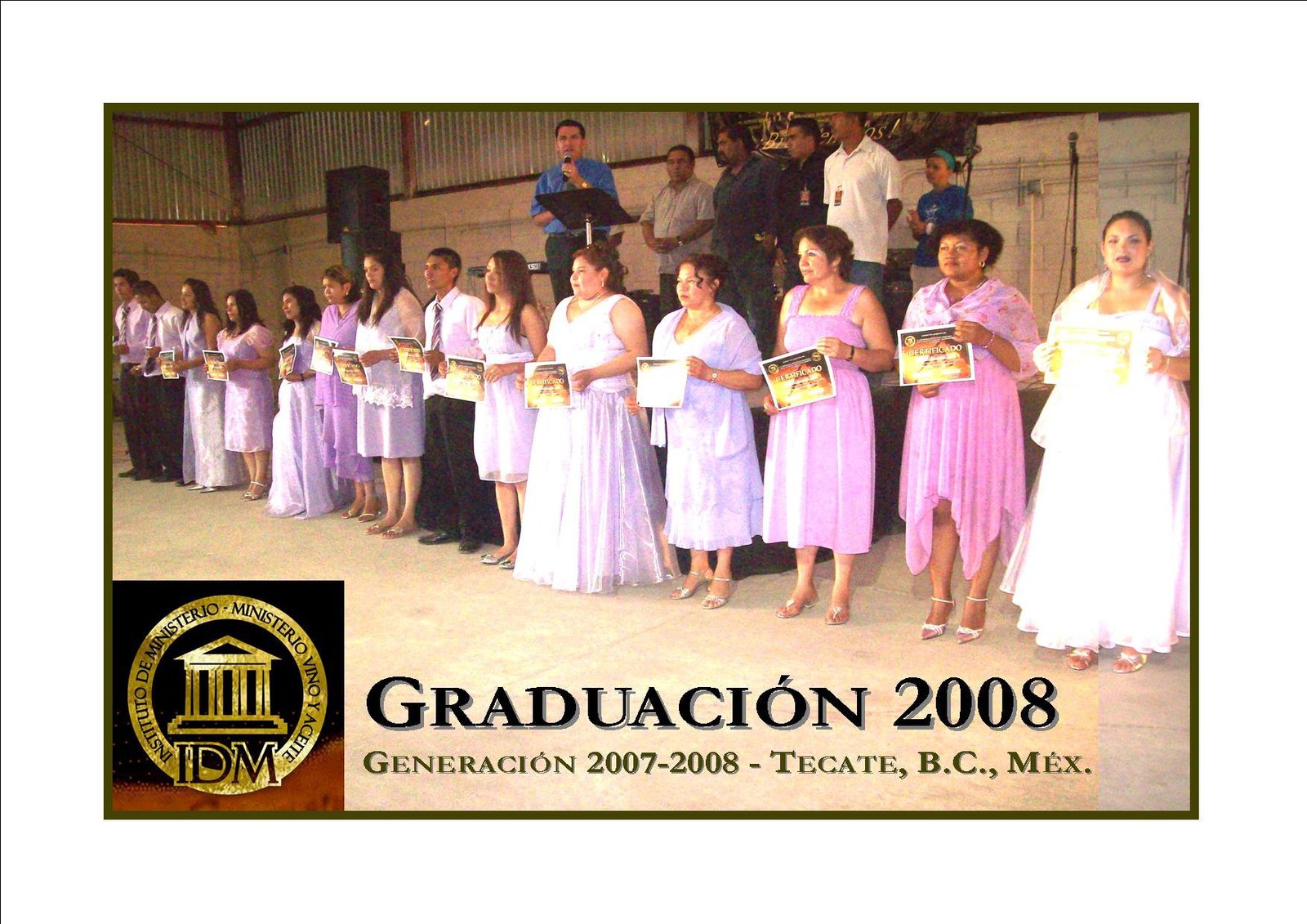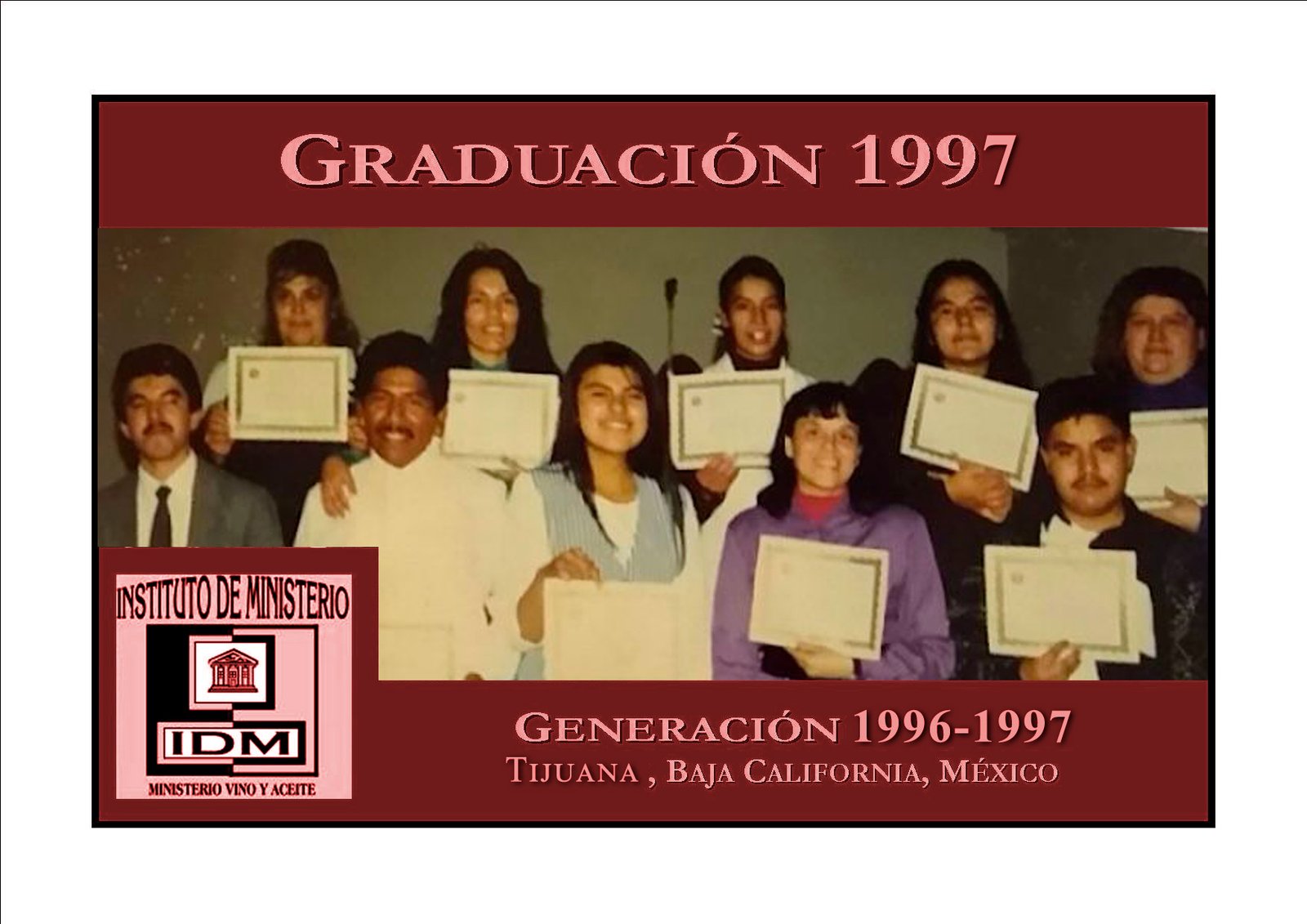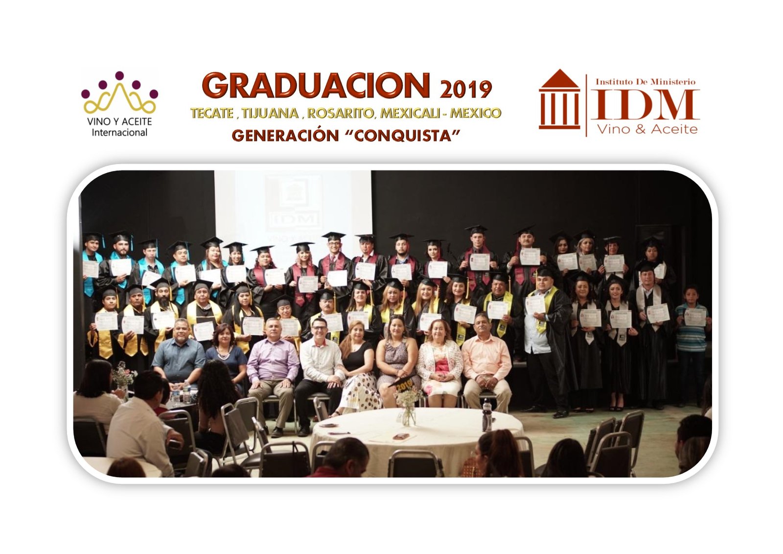 La Graduación del IDM se celebra en un Servicio Especial cada año (mes de Julio) en Tecate, B.C., México. Allí se entregan los Certificados a los estudiantes de cualquier lugar que han terminado algún nivel del IDM y que viajen a graduarse. A la vez, este Servicio Especial de Graduación se puede celebrar en cualquier lugar donde se halle un grupo de estudiantes que hayan terminado (previa entrevista y autorización de la Oficina IDM).